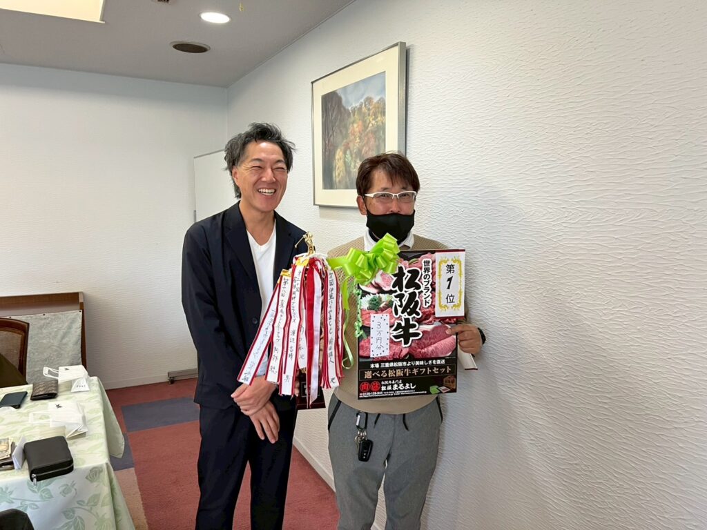 副賞には、豪華松坂牛ギフト。ステーキ、すき焼き、しゃぶしゃぶなどから好みに合わせて選ぶことができます。分けてもらいたい。