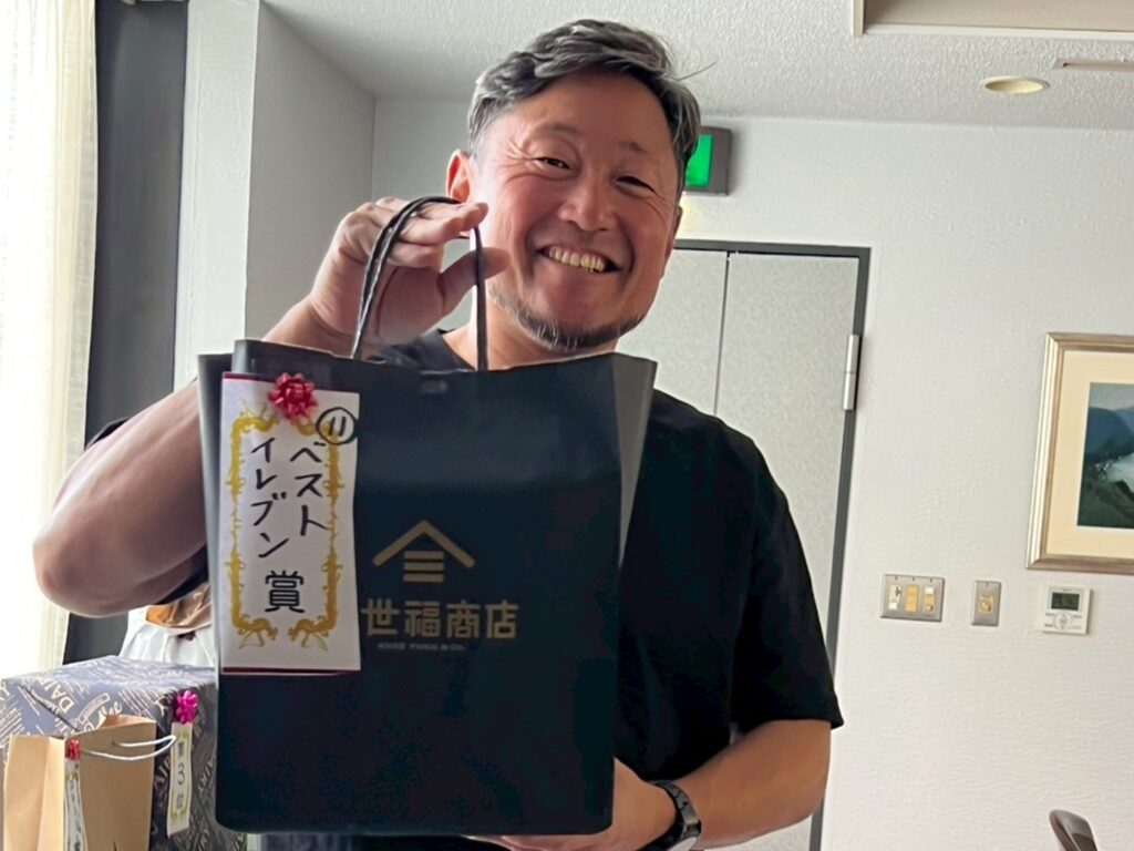 ゴルフを始めたばかりながら成長著しい我らがM氏も、久世福商店のゴハンのおともセットを入手し満面の笑みを浮かべていました。微笑ましい一枚。